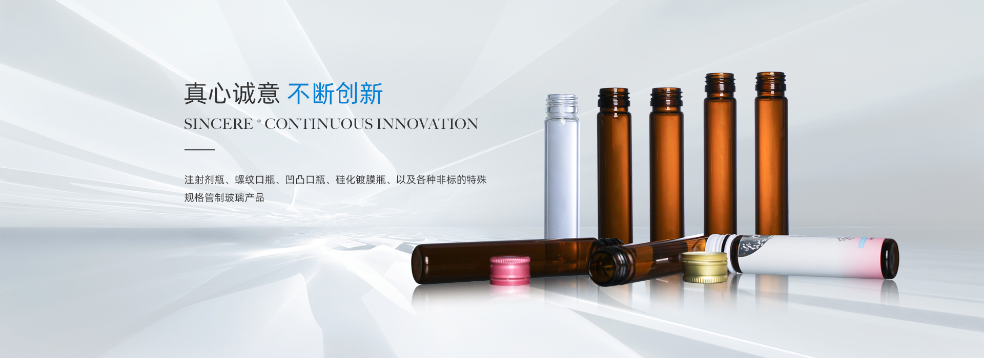 我們擁有豐富的產品線,包括注射劑瓶、螺紋口瓶、凹凸口瓶、硅化鍍膜瓶、以及各種非標的特殊規格管制玻璃產品。